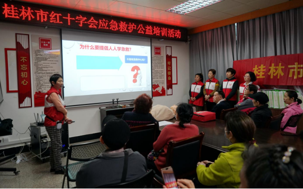 3月23日上午,桂林市充分利用老干部活动中心“金秋家园”共享阵地的培训功能,联合市红十字会开展离退休干部应急救护技能专场培训,旨在普及离退休干部应急救护知识,增强应急救护意识,提升应对突发意外状况的救护能力,60余名老干部参加活动。