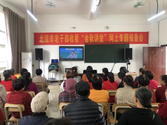 图为北流市老干部收看“金秋讲堂”网上专题报告会