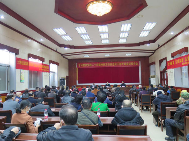 1月12日,来宾市学习贯彻党的二十大精神离退休干部专场宣讲报告会在柳州市原地委小礼堂举行。市委常委、组织部部长农毅作宣讲报告。市委老干部局局长、组织部副部长(兼)梁艳芬主持报告会。