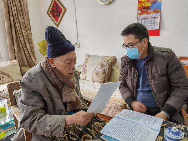 图为老干部工作股上门征求老干部的意见建议