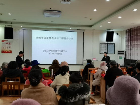 为不断提高退休干部生活质量,结合蒙山县康养明城建设,12月7日,梧州市蒙山县委老干部局联合蒙山县科协共同邀请县人民医院副院长李建中在县青少年活动中心开展健康知识科普讲座,退休干部们热情高涨,参与人数有60余人。