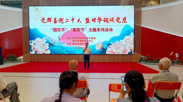 为进一步弘扬尊老敬老传统美德,营造良好的爱老助老社会氛围,9月27日,梧州市委老干部局和梧州市党群服务中心组织开展了一场以“党群喜迎二十大 盛世华诞颂党恩”为主题的庆国庆、迎重阳活动。梧州市委组织部副部长、老干部局局长杨安,梧州市政协原主席李毅,梧州市人大常委会原副主任钟景珍,离休干部董景新、谭苏、李述洲等参加活动。