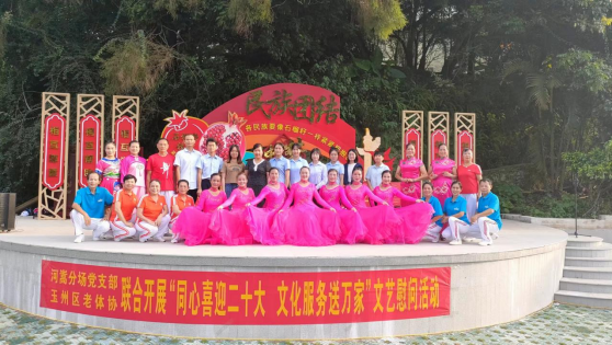 近日,玉林市玉州区老体协与六万林场河嵩分场党支部在六万林场联合开展“同心喜迎二十大 文化服务送万家”文艺慰问活动,为基层群众送上一场丰富多彩的惠民演出。