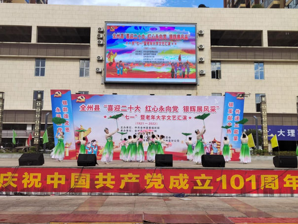 为庆祝中国共产党成立101周年,7月1日,桂林市全州县老年大学在中心广场举办了“喜迎二十大 红心永向党 银辉展风采”文艺汇演活动。桂林市委老干部局、全州县相关领导,县老年大学校班子及全体学员共600余人参加了此次活动。
