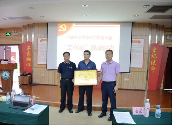 李峰代表广西老科协给农科院分会会长黄家雍、秘书长潘海江授予广西老科技工作者协会“工作站”牌匾。潘海江在致辞中感谢广西老科协对农科院分会的重视和支持,并表态将持续推进一流协会建设,不辜负广西老科协的期望。农科院分会多位老科技工作者结合自身实践和感受,在“喜迎二十大”七一建党座谈会上踊跃发言。