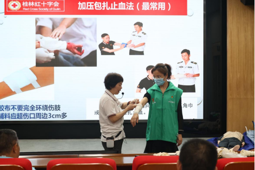 近日,桂林市委老干部局联合市红十字会在桂林市党群服务中心开展红十字应急救护知识技能专题培训,40多名老干系统工作人员参加了培训。