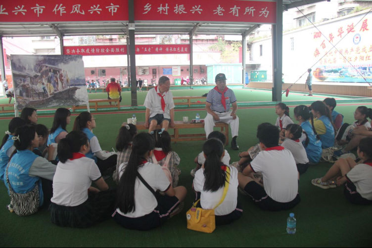 孩子们老前辈们郑重敬礼,为他们佩戴红领巾,表达心中崇高的敬意,并纷纷表示,通过老前辈的精彩讲述,深深感受到党的伟大和美好生活的来之不易,今后会用心学习,报效祖国,为实现中华民族伟大复兴的中国梦而努力奋斗!最后,大家纷纷挥着手中的国旗和党旗,放声高唱《没有共产党就没有新中国》《我们是共产主义接班人》,用高亢嘹亮的歌声向党表达自己的心声,整个活动圆满结束。(梧州市委老干部局 蒋小鹏)