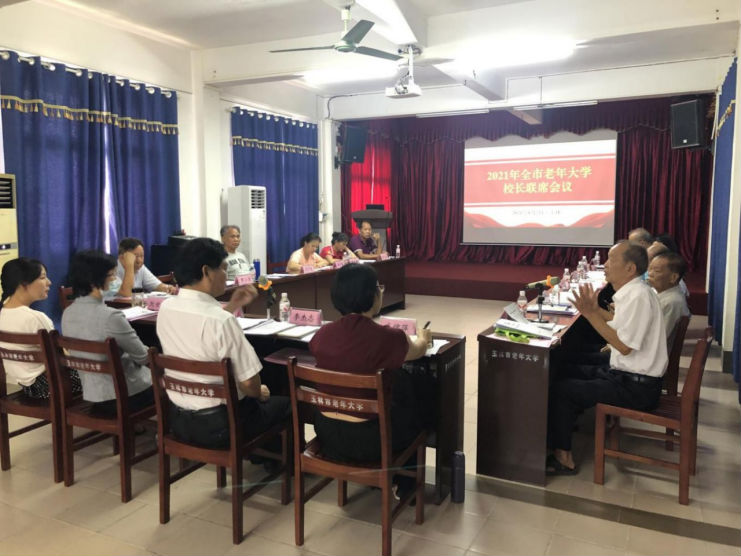 8月2日上午,玉林市2021年全市老年大学校长联席会议在市老年大学视听室召开,全市6个县(市、区)老年大学校长和办公室主任参加了会议。玉林市委组织部副部长、老干部局局长李杰志参加会议。玉林市老年大学常务副校长成儒萍主持会议。