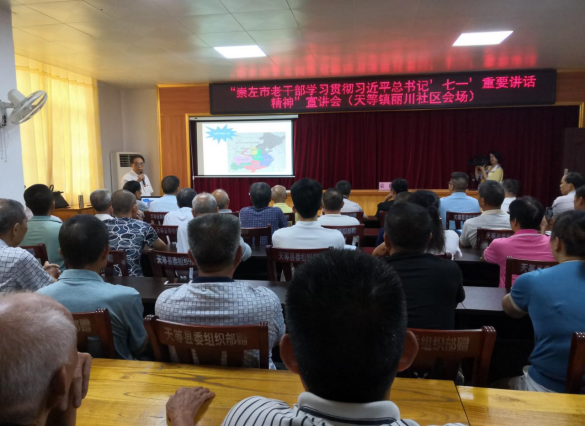 近日,崇左市委老干部局、市委离退休干部工委组织曾担任过各级党委(党组)、基层党组织书记的老党员成立“学习贯彻习近平总书记‘七一’重要讲话精神宣讲小分队”,发挥老党员、老干部的政治优势,深入乡村、社区、街道、学校宣讲习近平总书记“七一”重要讲话精神,推进基层党组织迅速掀起学习高潮,将学习成果转化为奋进新征程、建功新时代的实际行动。
