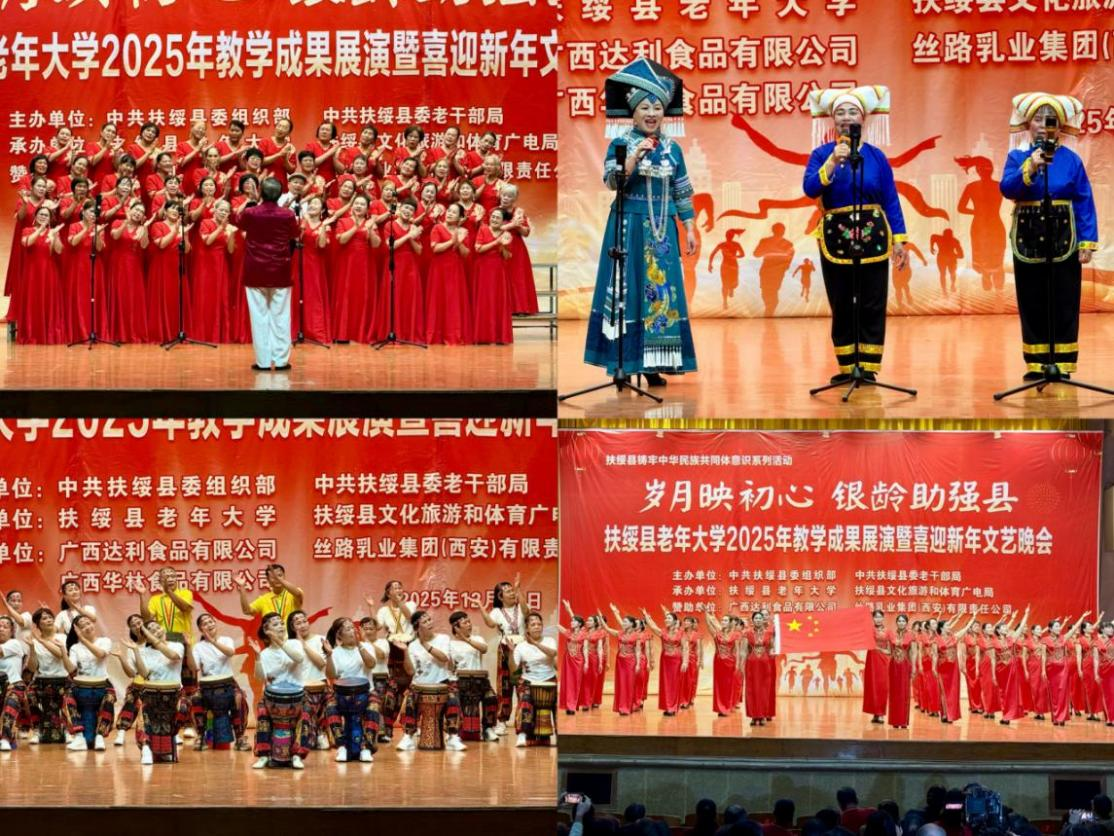 岁月如歌,夕阳正红。在2026年元旦佳节到来之际,扶绥县老年大学成功举办2025年教学成果展演活动。学员们以饱满的热情和精湛的技艺,呈现了一场精彩纷呈的艺术盛宴。