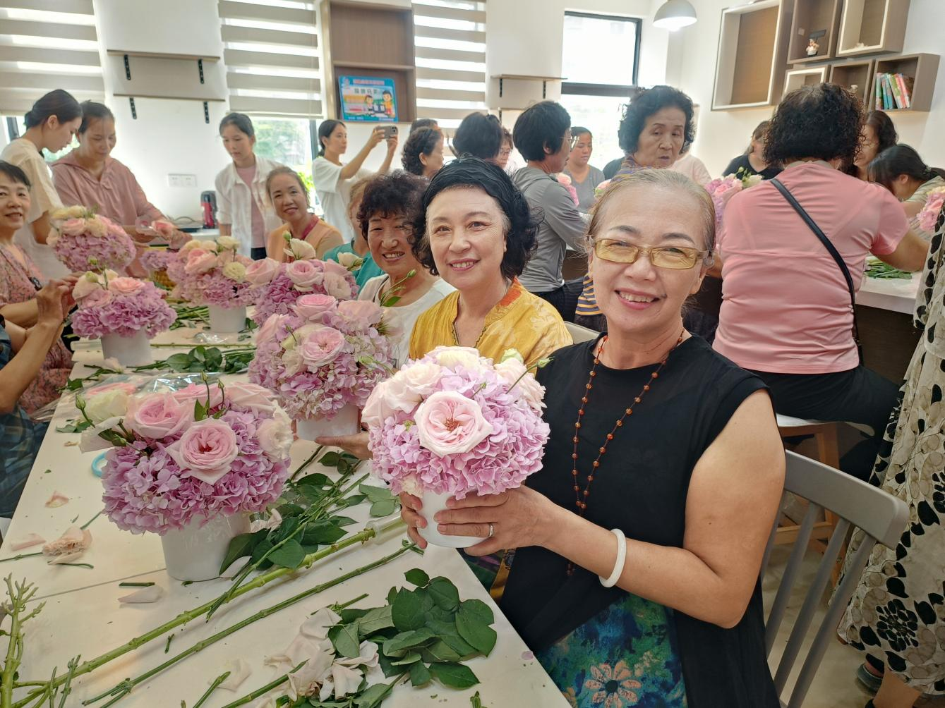 活动开始,插花老师首先为老人们详细讲解了插花的艺术理念,包括花材的选择、色彩的搭配等知识。老师边讲解边现场演示,将原本普通的花材巧妙组合,一个极具美感的花艺作品便呈现在大家眼前。老同志们听得十分专注,不时拿出手机记录下关键的步骤和要点。讲解结束后,老同志们迫不及待地开始了自己的创作。经过一番精心创作,一束束饱含创意与巧思的花艺作品相继诞生。看着自己亲手制作的花艺作品,老同志们的脸上都洋溢着喜悦与自豪的笑容,纷纷拿出手机拍照留念,记录下这一充满成就感的时刻。