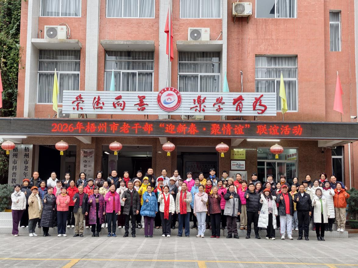 为进一步丰富老干部精神文化生活,展现新时代老干部昂扬向上的精神风貌,近日,梧州市委老干部局在市老干部活动中心举办2026年梧州市老干部“迎新春·聚情谊”活动。市银耀西江志愿服务总队、市银耀西江文化艺术总队、市老年大学学联会和市老年大学医疗志愿服务队等团队的60多名老干部参加活动,共同迎接新春佳节的到来。