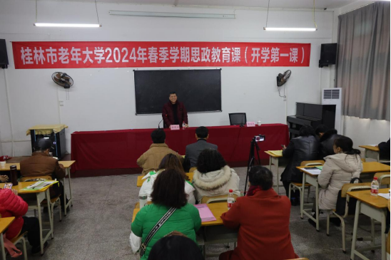 “新年好”“欢迎你们”……开学当天,桂林市老年大学全体教职员工早早来到学校,热情地迎接每一位新老学员的到来,为学员们送上新学期第一声温暖的问候。各班围绕积极老龄观、健康老龄化主题认真组织并上好“开学第一课”,明确安全教育、新学期课程安排等内容,为新学期赋能,引导学员们谨记安全第一、遵守校纪班规、争做乐龄先锋、传递时代正能量。课堂上,老师们以饱满的热情投入教学,学员们快速进入学习状态,个个神采奕奕、专心致志,学习氛围十分浓厚。