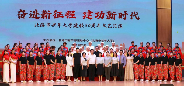 3月23日上午,北海市老年大学举行“奋进新征程 建功新时代”建校30周年庆祝活动,当天活动现场举行了丰富多彩的文艺演出,有混声合唱、乐器合奏、舞蹈等,现场气氛隆重热烈。