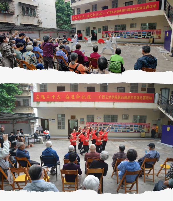 为丰富离退休教职工文体生活,提高身体素质,倡导积极、健康、文明的老年人生活方式,努力构建大美广艺和谐校园,近日,广西艺术学院在南湖校区离退处小院子举办“庆祝二十大 奋进新征程”第25届老年文体比赛活动,活动吸引了广大离退休老同志积极参加。