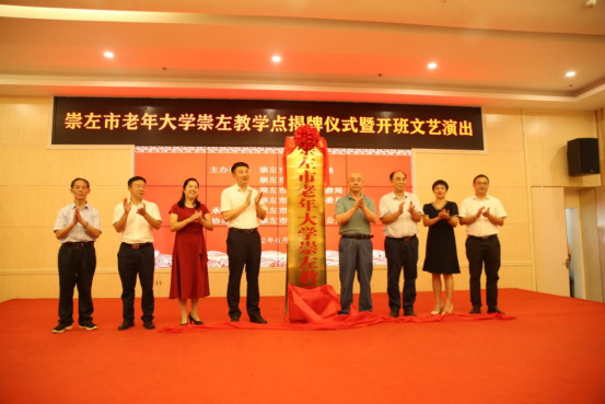崇左市老年大学崇左教学点揭牌成立,是崇左市老年大学建校30周年重要系列活动之一。揭牌仪式结束后举行文艺演出,节目形式多样,有舞蹈、旗袍秀、独唱、合唱、器乐演奏等,老年大学的学员们神采奕奕、风采依旧,充分展现了老年学员积极向上、退休不褪色的精神风貌,精彩的表演赢得了观众阵阵热烈地掌声。