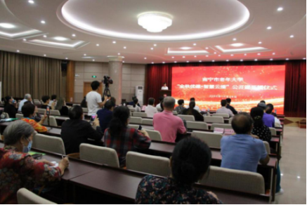 10月28日,南宁市老年大学举办“金秋优课·智慧云播”公开课开播仪式。南宁市委组织部副部长、市委老干部局局长、市委离退休干部党工委书记邝涤,市委老干部局副局长、市委离退休干部党工委副书记林达新,市老年大学常务副校长黄邦林等领导同志出席仪式。学校教师、学员、临时党支部书记代表和工作人员共50余人参加了仪式。