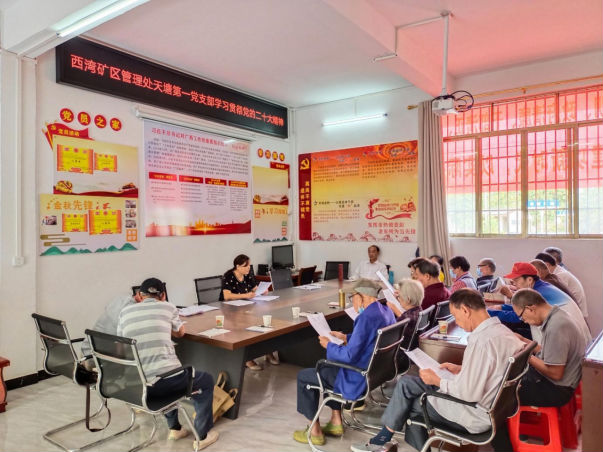 近日,贺州市西湾矿区管理处党工委组织各党组织和党员学习宣传贯彻党的二十大精神,在矿区营造了浓厚的学习氛围,掀起学习贯彻党的二十大精神热潮。