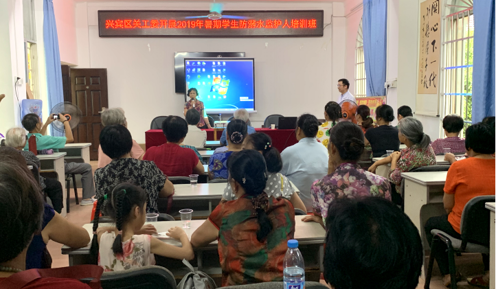 活动前,兴宾区关工委组织开展暑期学生防溺水安全教育暨引导绿色上网监护人培训班。