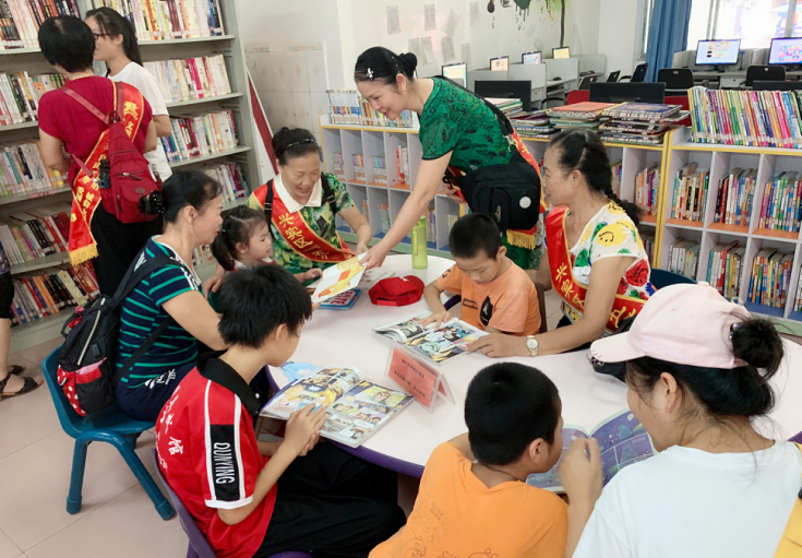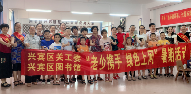 8月1日,来宾市兴宾区关工委组织五老志愿者到兴宾区图书馆开展“老少携手