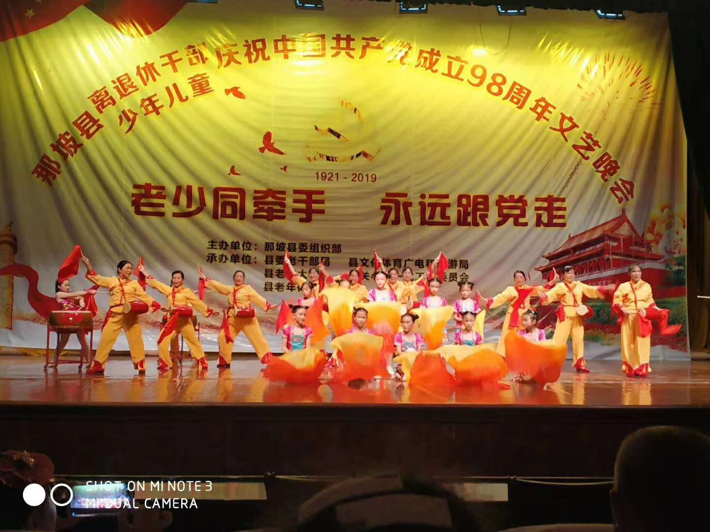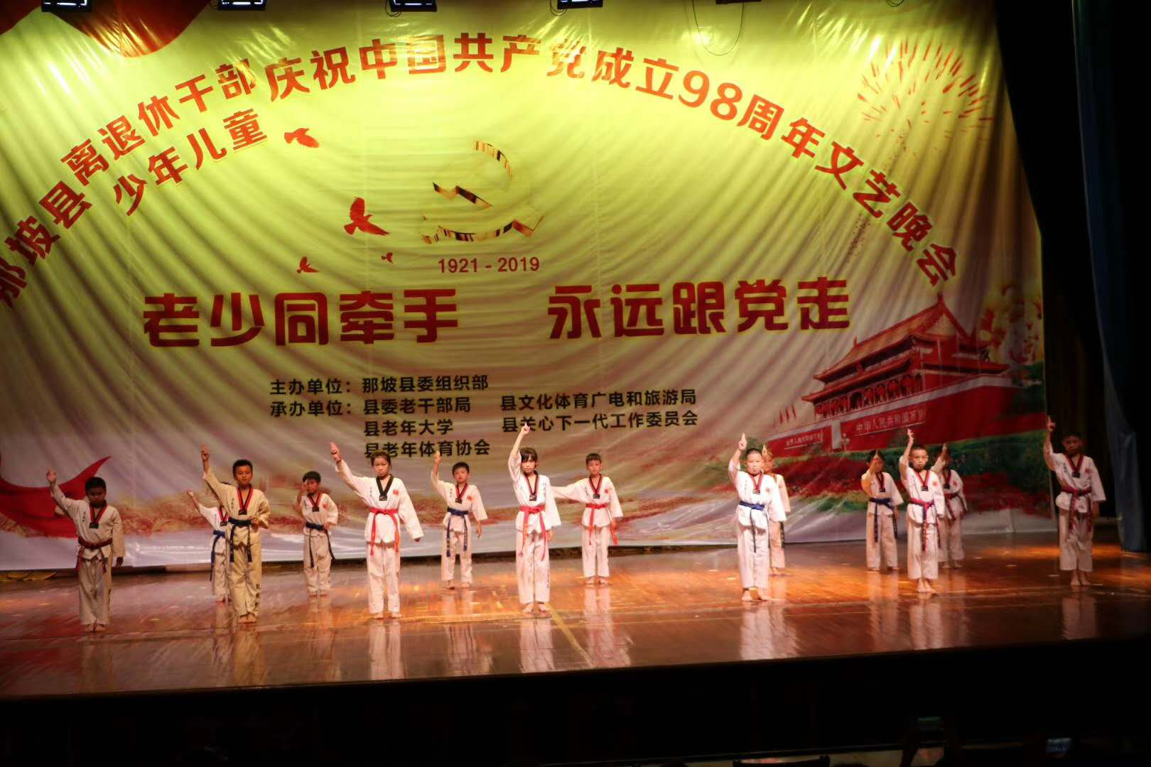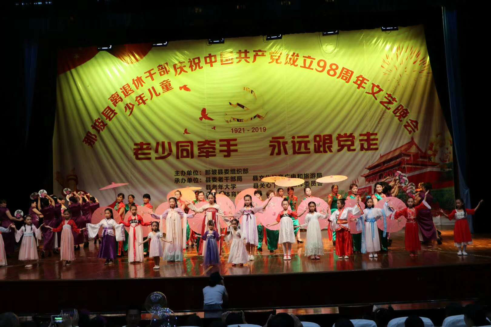 6月27日晚,由百色市那坡县委组织部主办、那坡县老干部局、那坡县文化体育广电和旅游局、那坡县老年大学、那坡县关心下一代工作委员会、那坡县老年体协承办的“老少同牵手 永远跟党走”文艺晚会在县人民大会堂隆重举行。