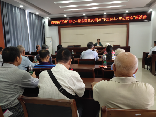 镇关工委常务副主任江小雪主持召开迎七一纪念建党98周年“不忘初心,牢记史命”座谈会