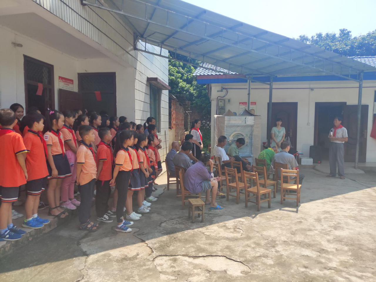在慰问活动中,乡关工委“五老”覃德珍老师及时传达了乡党委、政府对老人们的关怀,祝福老人们健康长寿,并和同学们一道把粽子、牛奶、水果等慰问品一一送到老人们手中,让老人们感受到浓厚的节日氛围,感受生活处处有温暧,浓浓温情时刻在,感受到社会主义好,共产党好。通过慰问活动,也让同学们了解端午节的由来,受到传统文化教育,懂得尊老敬老是中华民族的优良传统,要世世代代继承和弘扬好祖国的优秀文化和优良传统。
