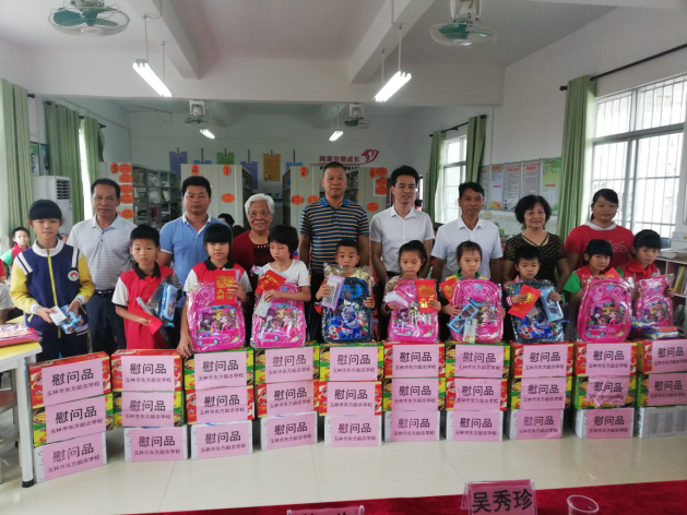 活动中,玉州区关工委常务副主任吴秀珍、玉林市东方励志学校副校长黄先分别向孩子们赠送了价值5000余元的牛奶、面条、书包、笔、文具盒等慰问品和慰问金。并致以节日的祝福,同时勉励孩子们要勤劳勇敢、自强不息,要努力学习,将来做一个有用之才。