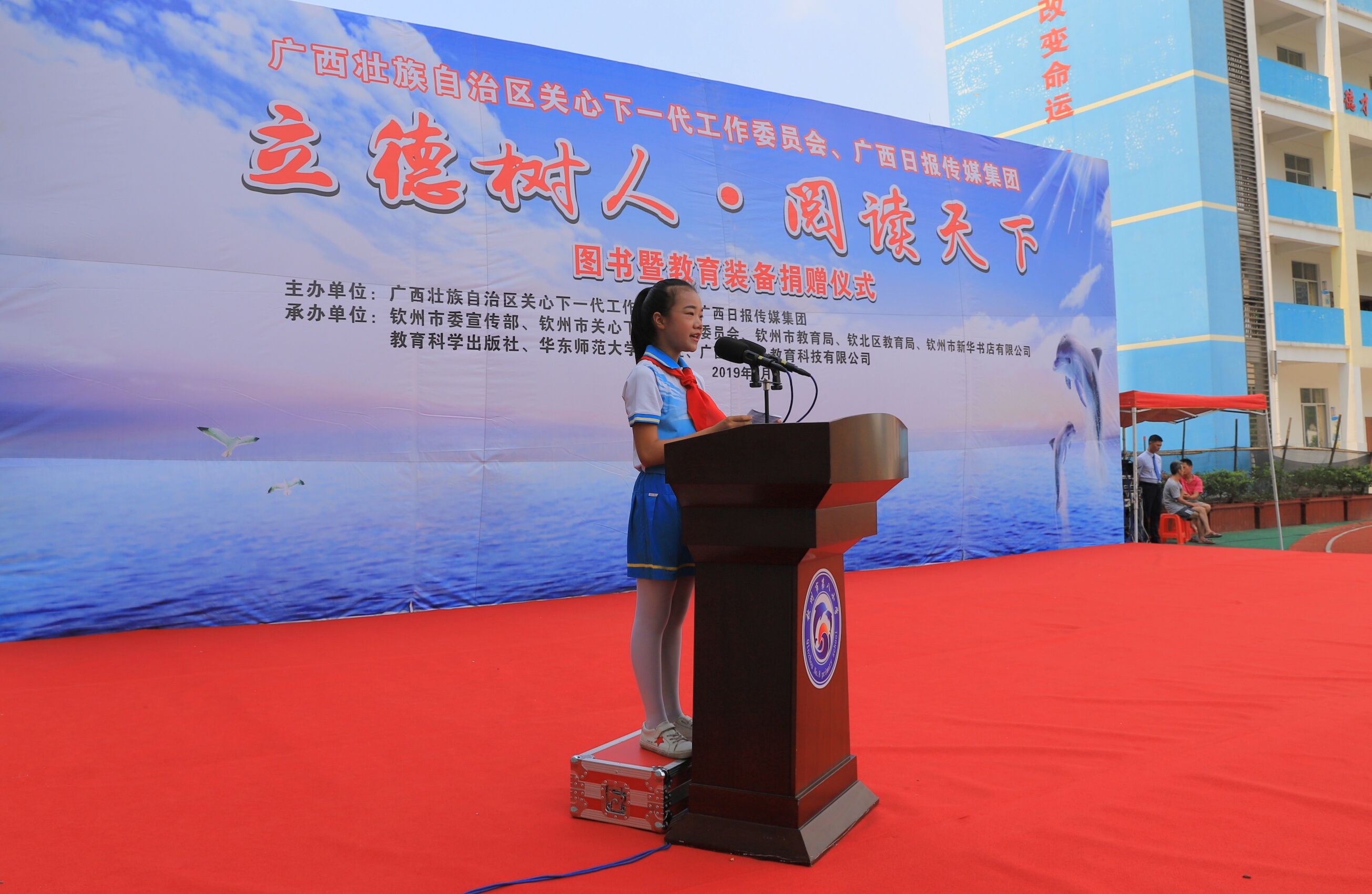 据了解,“立德树人·阅读天下”图书捐赠活动由自治区关工委等单位倡议举办,得到了教育科学出版社、华东师范大学出版社、广西接班人教育科技有限公司等单位以及热心教育公益事业人士宁德鹏博士的大力支持与响应,今年已先后在百色、玉林、贵港、河池顺利举行,共捐赠了700万元的图书和教育装备,钦州市是此项活动今年的收官之站。至此,今年的“立德树人·阅读天下”图书暨教育装备捐赠活动圆满完成。
