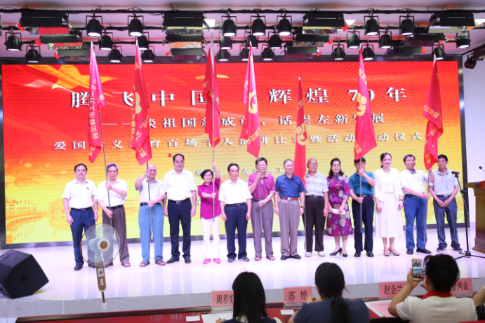 活动中,举行了为各县(市、区)青少年爱国主义教育分团授予“腾飞中国·辉煌70年”五老宣讲团锦旗仪式。