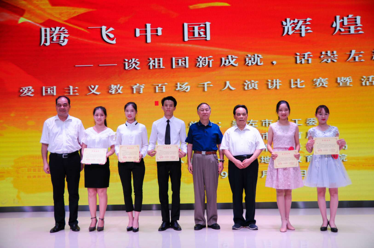 崇左市政协科教文卫委原主任赵金兰同志为学院师生作爱国主义教育宣讲,10名教育学院学生参加首场演讲比赛。他们以自己的亲身经历和深切感受,热情讴歌中国共产党的丰功伟绩,讴歌新中国建设的伟大成就,讴歌新兴崇左崛起的丰硕成果,讴歌自己家乡的巨大变化。老同志的宣讲和学生们的演讲,让师生们感受到了中国共产党人和全国人民为中华民族的解放事业、为中华民族的伟大复兴不畏牺牲、艰苦奋斗的忠诚爱国精神,激发了青少年爱党、爱国、爱社会、爱人民的情感。参加演讲活动的学生都表示,一生听党话、跟党走,胸怀报效祖国之心、为国奋斗之志,树立远大理想,担当时代责任,让爱国主义的伟大旗帜始终在心中高高飘扬,让青春在为实现中华民族伟大复兴的奋斗中闪闪发光。