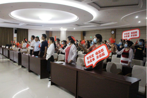 现场开展“红色歌曲大家唱”活动,合唱《没有共产党就没有新中国》。