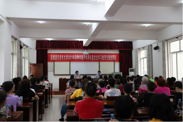 开学典礼结束后,举办党史学习教育专题培训班,深入学习贯彻习近平总书记在党史学习教育动员大会上的重要讲话精神,扎实开展老干部党史学习教育活动。培训班邀请市关工委“五老宣讲团”成员、市关工委常务副主任缪宽遂、原港口区教育局副局长黄文良为学员分别讲授《防城港建港历史》、《防城港“三光企”革命历史》。