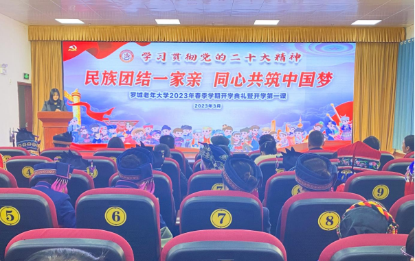 为深化民族团结进步教育,铸牢中华民族共同体意识,3月2日,罗城县老年大学召开“中华民族一家亲,同心共筑中国梦”2023年春季学期开学典礼暨开学第一课活动。
