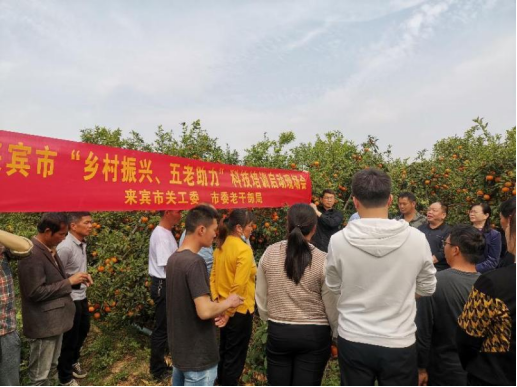 来宾市积极推进“乡村振兴 五老助力”科技培训。321日上午,来宾市委老干部局、市关工委联合市科协、市科技局、市老科协,组织象州县军田村柑橘种植户30多人到兴宾区国有维都林场举办现场科技培训。