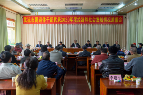 1月26日上午,北流市委、市政府召开会议,向离退休干部代表通报2020年经济和社会发展情况。市领导赵志刚、华海德、梁小平、李永才、陈基林、黄聪、张进强、庞立新等参加会议。