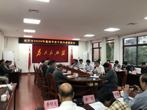 10月20日,桂平市举行2020年重阳节老干部代表座谈会,市领导韦庆强、陈锦秀、李健龙、赵理到场与老干部代表们共话桂平发展,喜迎重阳佳节。